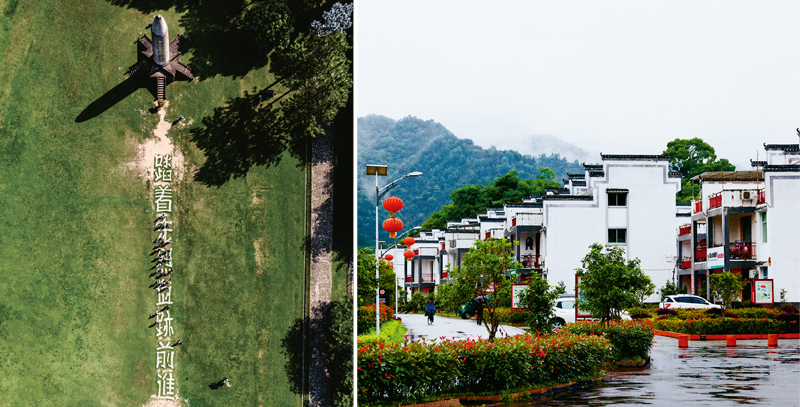 2018年7月29日,瑞金市率先在贛南脫貧摘帽,“共和國搖籃”在全面建成小康社會道路上邁出關(guān)鍵一步。左圖為2018年7月21日拍攝的江西瑞金市紅軍烈士紀念塔的鳥瞰圖(黃龍/攝)。右圖為2019年5月6日拍攝的華屋村新貌(新華社記者 蘭紅光/攝)。華屋村位于江西瑞金市葉坪鄉(xiāng),是遠近聞名的“紅軍村”。