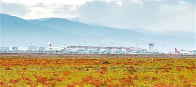 秋季的迪慶香格里拉機(jī)場(chǎng)鮮花簇?fù)?。葉傳增 李 謹(jǐn)攝影報(bào)道