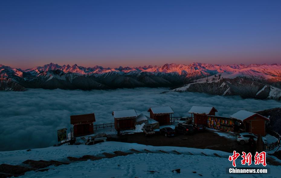 連日來,位于四川省雅安市寶興縣磽磧藏族鄉(xiāng)的達(dá)瓦更扎景區(qū)雪后放晴。期間,日出、藍(lán)天、云海、雪山、星空等美景如畫,夢(mèng)幻飄渺,蔚為壯觀。