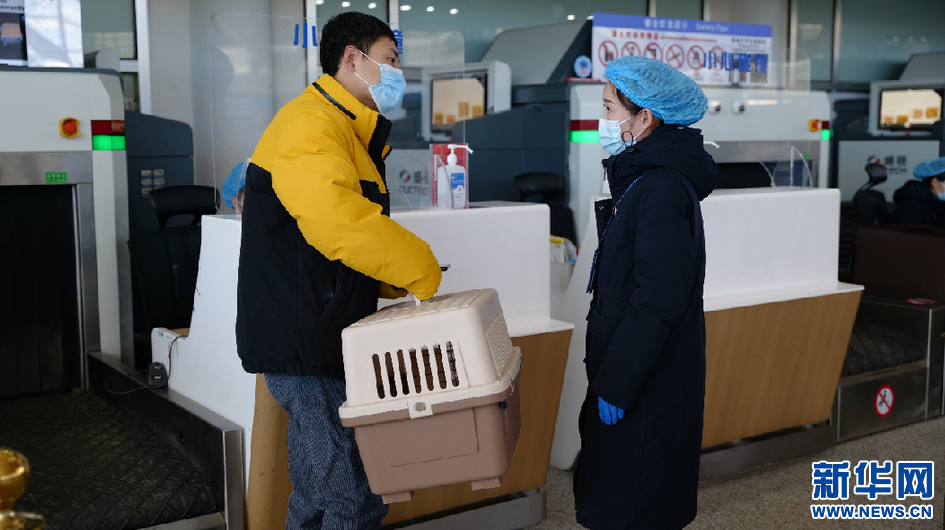 1月17日,拉薩貢嘎機(jī)場內(nèi)旅客正在向工作人員咨詢寵物托運(yùn)事宜。新華網(wǎng) 貢桑央吉(實習(xí)生) 攝