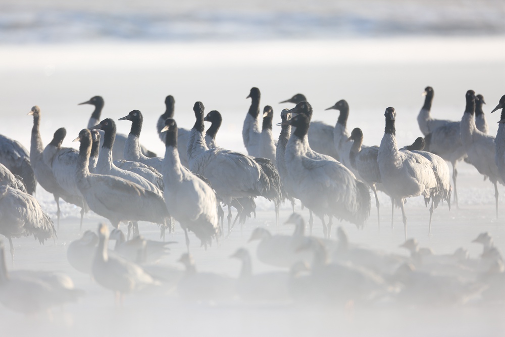近日,西藏拉薩市林周縣迎來降雪,位于林周縣境內(nèi)的黑頸鶴保護(hù)區(qū)變成了粉妝玉砌的世界,黑頸鶴與白皚皚的大雪相互點(diǎn)綴,構(gòu)建出一幅自然和諧的冬日畫卷。