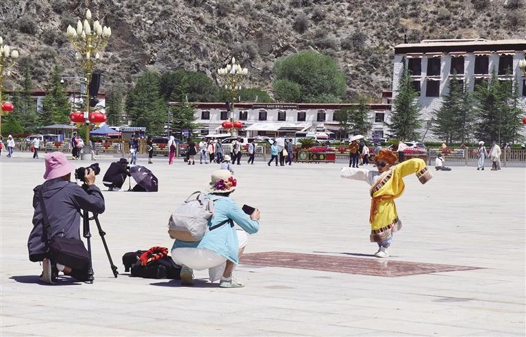 記者還了解到,今年以來西藏比較熱門的景區(qū)(點)有布達拉宮、大昭寺、羅布林卡、巴松措、雅魯藏布大峽谷、羊卓雍措等。在布達拉宮廣場前,記者看到不少旅游團以及結(jié)伴騎行來拉薩游玩的游客,布達拉宮廣場恢復(fù)了往日的熱鬧?!皝淼轿鞑匚也虐l(fā)現(xiàn),這里的風景真的不同于其他地方,我們都非常喜歡這里,今天一早我就來到布達拉宮,實現(xiàn)了我人生的一大愿望?!眮碜詢?nèi)蒙古的郭先生說道。