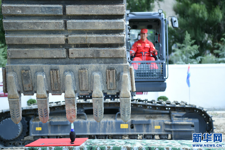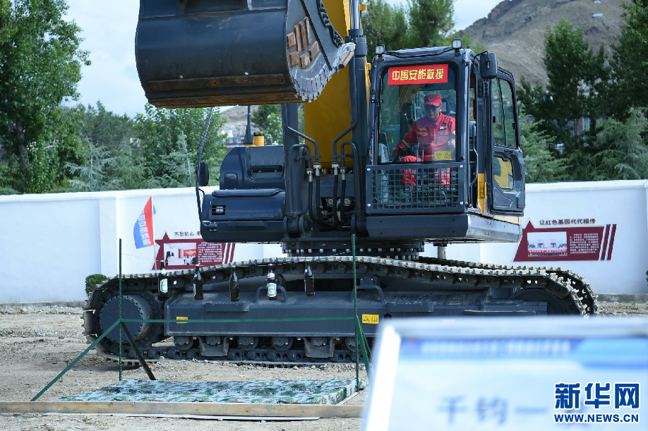 8月5日,工作人員在拉薩基地演示應(yīng)急搶險(xiǎn)動(dòng)態(tài)精準(zhǔn)科目—“挖掘機(jī)寫字”。新華網(wǎng) 旦增努布 攝
