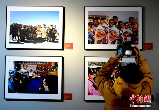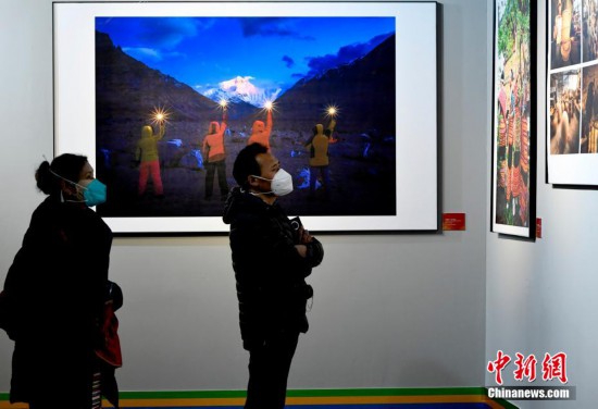 12月25日,第十五屆西藏珠穆朗瑪攝影大展在拉薩西藏牦牛博物館開幕。本次攝影大展共展出280件攝影作品,題材涉及人文、風(fēng)光等多個(gè)領(lǐng)域。創(chuàng)作手法涵蓋藝術(shù)、紀(jì)實(shí)、創(chuàng)意等諸多門類,作品風(fēng)格多樣、各具特色,彰顯了西藏地域文化特色。圖為觀眾正在欣賞展覽中的攝影作品。 李林 攝