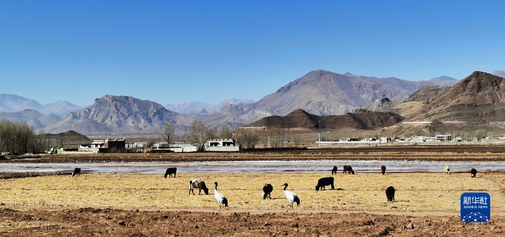 拉薩市林周縣松盤鄉(xiāng)冬日田野,動物和諧相處(12月24日攝,手機(jī)照片)。新華社記者 沈虹冰 攝