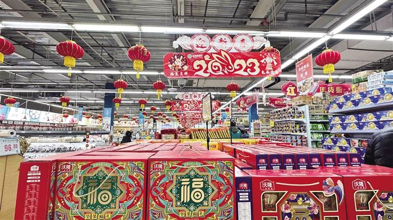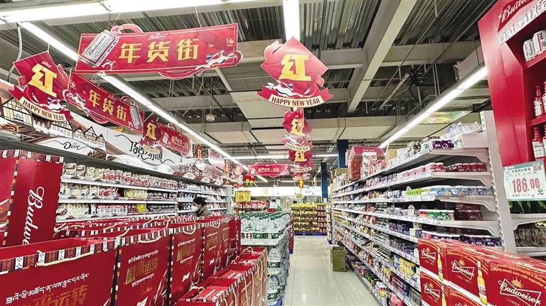 新年到,購買年貨不可少。走進大麥超市,寫有“新年快樂”字樣的標語牌隨處可見,一副副寓意吉祥的對聯(lián)、各式各樣的“福”字、燈籠等新年裝飾,把春節(jié)的氣氛烘托得喜慶十足。貨架上,新鮮蔬菜、米面糧油、糖果點心、酒水飲料等熱銷年貨種類繁多、一應俱全,人們喜氣洋洋地穿梭在貨架旁,精心挑選著心儀的物品。市民張女士正在挑選對聯(lián),她告訴記者:“今年我們全家都在拉薩過年,想把家里好好裝飾一下,讓過年的氛圍更濃一些。新年要有新氣象,我希望家人平平安安、健健康康。”