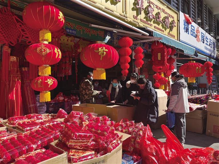 春節(jié)臨近,拉薩街頭巷尾年味兒漸濃,各個街道也比平時更加熱鬧。火紅的春聯(lián)、精致的福字貼畫、漂亮的燈籠和各種具有“兔元素”的飾品,無不在述說著新春的到來。放眼望去,處處洋溢著喜慶祥和的節(jié)日氛圍。