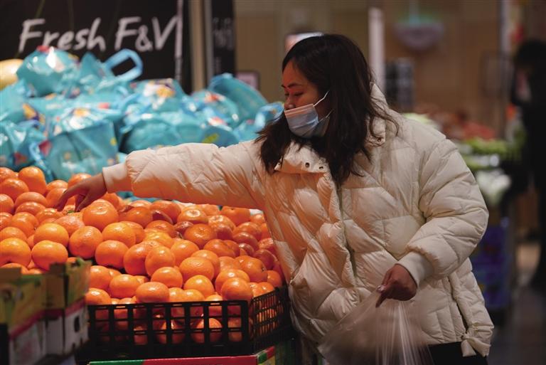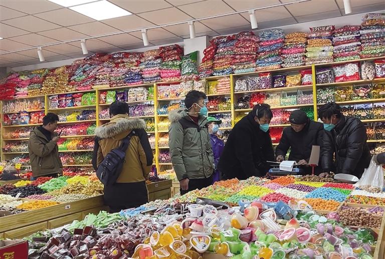 臨近新年,農貿市場也變成了極具年味的地方。走進藥王山菜市場,只見里面人來人往,蔬菜、水果、鮮肉等菜品整齊地擺放在攤位上,攤位前各種吆喝聲不斷,叮咚的手機收款聲此起彼伏,呈現(xiàn)出一派繁忙景象。人們手里拎著各式各樣的菜品,有說有笑,每個人臉上都洋溢著幸福的笑容。菜店劉老板笑著說:“這幾天來備年貨的人越來越多,新鮮蔬菜和各類水果最受顧客歡迎。看到生意慢慢好起來,我們心里也很高興,大家都能過個好年了。”