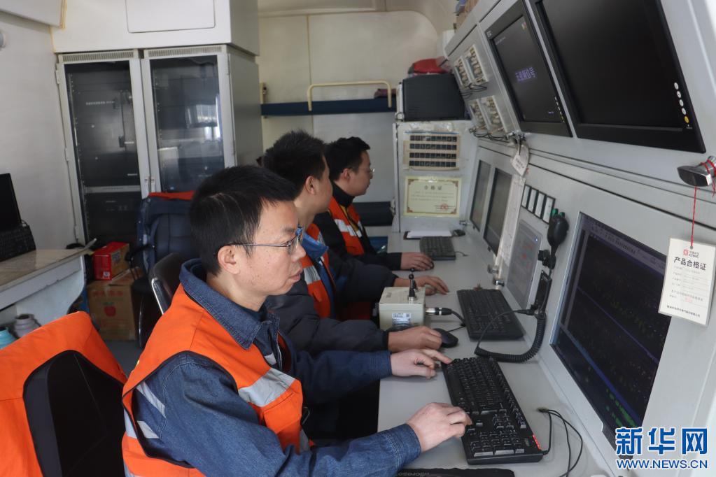 1月28日,探傷作業(yè)人員在探傷車?yán)锕ぷ?。(馬生明 攝)