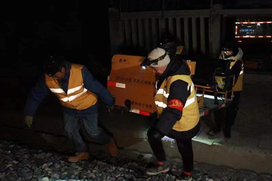 “大家?guī)Ш霉ぞ卟牧?,?zhǔn)備出發(fā)?!?2時(shí)整,隨著作業(yè)負(fù)責(zé)人探傷工區(qū)工長(zhǎng)羅布一聲令下,呼嘯的寒風(fēng)中,黃色的“迷你敞篷車”緩緩啟動(dòng),載著4名職工,開(kāi)始了當(dāng)晚對(duì)拉林鐵路20多公里線路的探傷檢查任務(wù)。