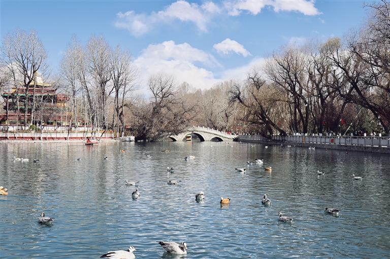 距離羅布林卡3.6公里的宗角祿康公園,位于布達拉宮的背后,同樣深受拉薩市民群眾的喜愛,相較于羅布林卡,這里更為熱鬧。每到3月份,公園里的桃花、紅葉李、海棠競相綻放,在湖水的映襯下顯得嬌俏動人。公園內(nèi)每隔一段距離便有涼亭、長椅供人們休息賞景,在這里,人們賞花、拍鳥,格外熱鬧。