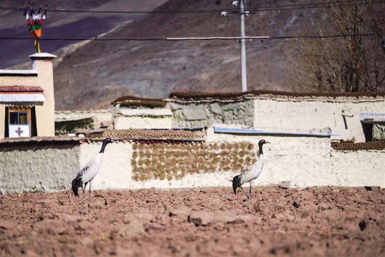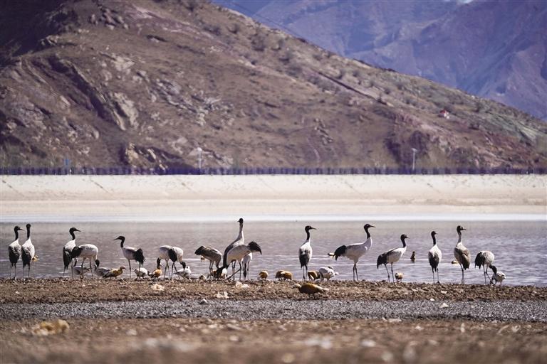 黑頸鶴是國(guó)家一級(jí)保護(hù)動(dòng)物,在藏語中稱為“沖沖”。主要棲息在海拔2500米至5000米的高原、草甸、沼澤地帶。拉薩北部的林周縣平均海拔約4200米,是黑頸鶴的主要越冬地之一。最近這段時(shí)間,對(duì)拉薩市林周縣野保員們來說,一邊要忙自家的農(nóng)活,一邊還要巡查候鳥情況?!耙呀?jīng)有一小部分飛走了,估計(jì)再過半個(gè)月都會(huì)陸續(xù)飛走?!?月23日上午,野保員旦增告訴記者,在虎頭山水庫和卡孜水庫越冬的候鳥有一部分已經(jīng)飛走了。野保員口中的“飛走”便是遷徙,遷徙是候鳥的本能,一年一年,跟隨時(shí)間的召喚,完成兩次遷徙:繁殖和越冬。