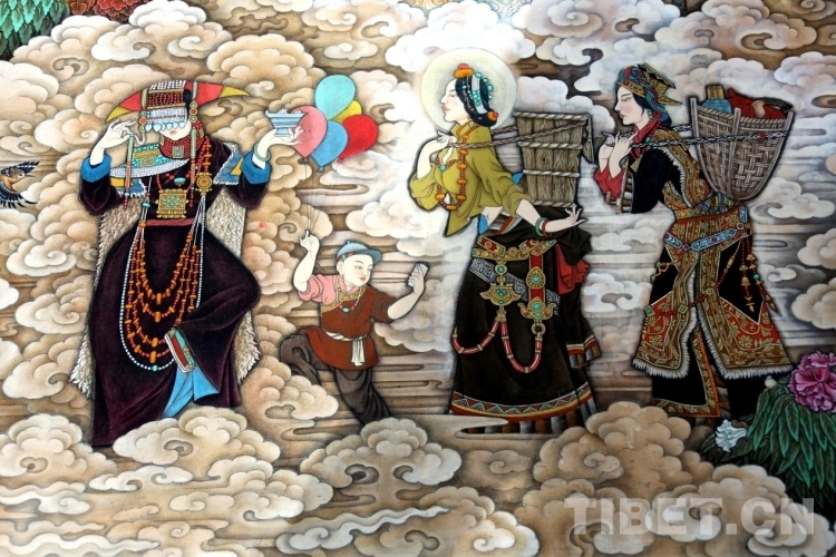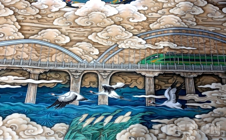 《高原明珠》長10.08米、高3.27米,于2023年2月份正式創(chuàng)作完成。創(chuàng)作導向圍繞進一步鑄牢中華民族共同體意識的豐富內涵,展示中華民族深厚的文化底蘊,描繪雪域高原的人文美、生態(tài)美、文化美,生活美。