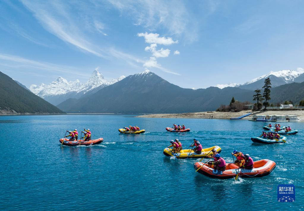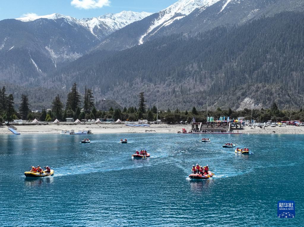 當日,2023年阿依舍·中國漂流聯(lián)賽(西藏工布江達縣站)在西藏林芝市巴松措國家森林公園開賽。