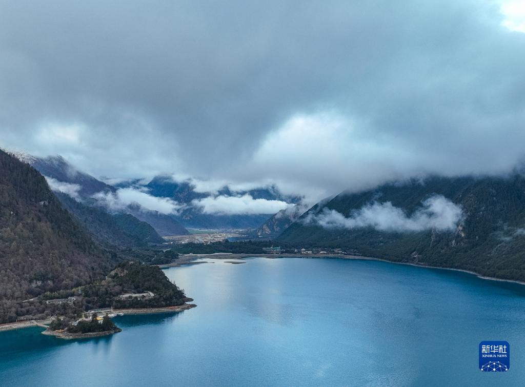 4月17日拍攝的巴松措(無(wú)人機(jī)照片)。新華社記者 黃耀漫 攝