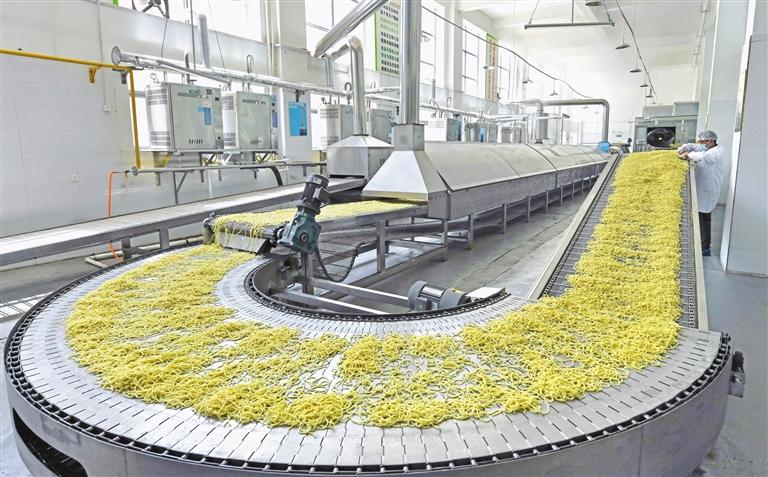 圖為西藏孔巴農(nóng)畜產(chǎn)品開(kāi)發(fā)有限公司的藏面生產(chǎn)流水線。記者 唐斌 攝
