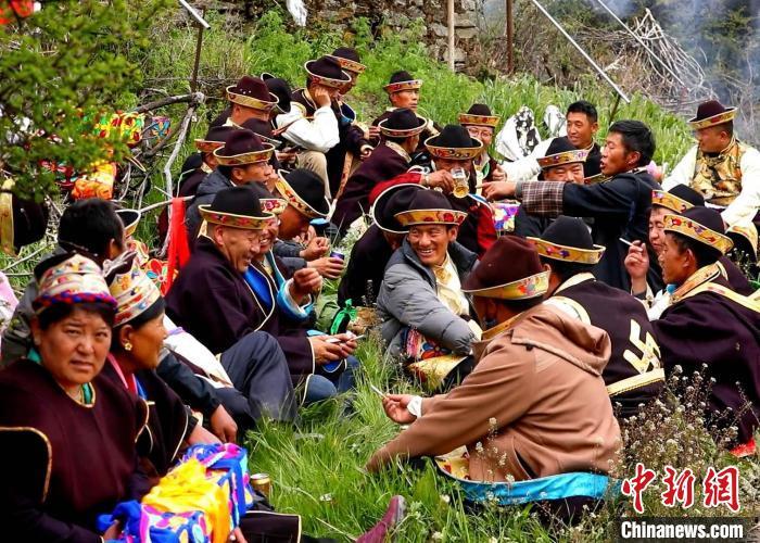 米林村處處生機(jī)盎然,有盛開(kāi)的桃花、油菜花、綠色的麥田,山林間不時(shí)傳來(lái)的鳥(niǎo)鳴聲,似乎都是在一起祈禱今年的豐收。村民們身上還背有經(jīng)文,圍繞全村田園轉(zhuǎn)上一圈,轉(zhuǎn)到每一塊農(nóng)田前都要煨桑祈福豐收,舉行祭祀活動(dòng)。祭祀活動(dòng)后,能歌善舞的婦女們總是要高歌起舞,以此來(lái)表達(dá)自己喜悅的心情。