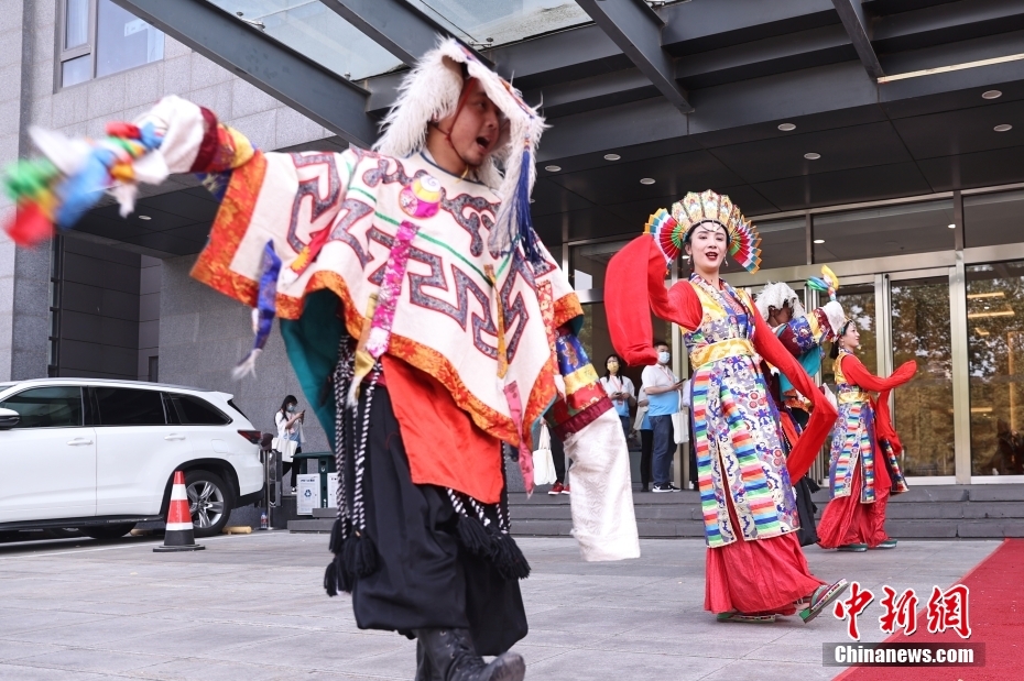 5月23日,“2023·中國(guó)西藏發(fā)展論壇”在北京舉行。會(huì)場(chǎng)外,活潑獨(dú)特的藏式迎賓舞蹈、展示西藏人文自然風(fēng)貌的圖片,已在論壇開(kāi)幕前預(yù)熱起探討西藏新發(fā)展的氛圍。圖為藏式迎賓舞蹈。