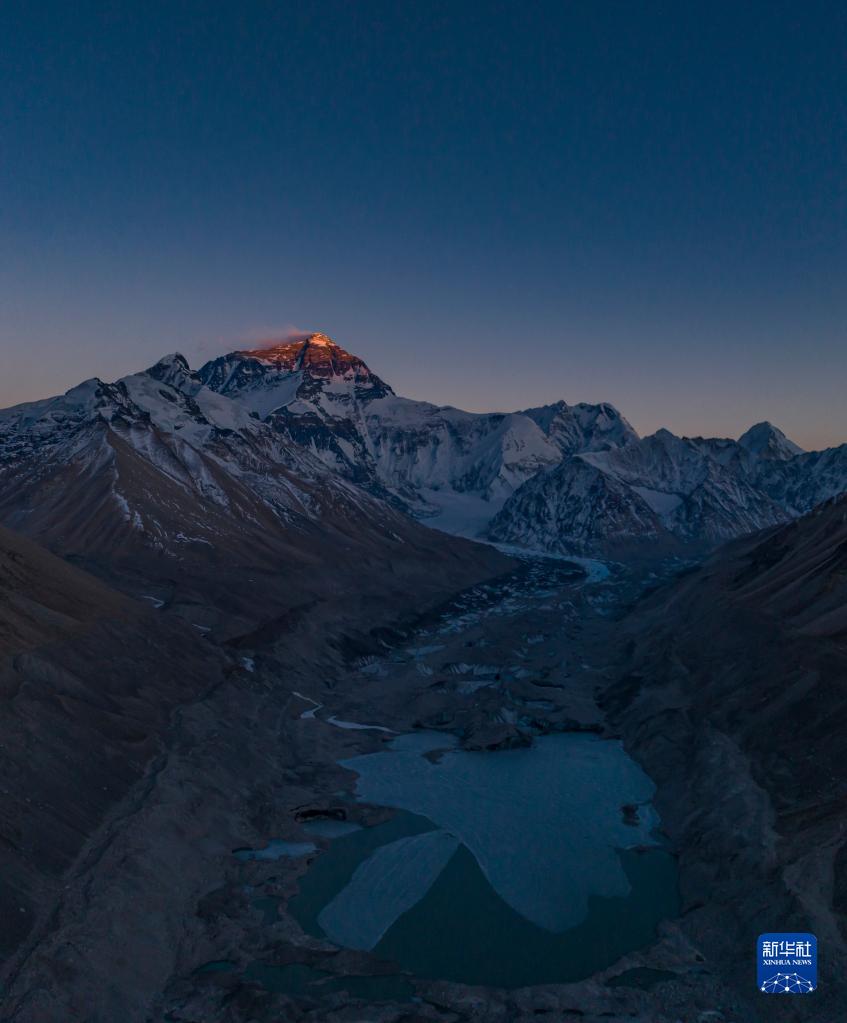 這是在海拔6000米左右高空拍攝的珠穆朗瑪峰(5月26日攝,無人機(jī)照片)。新華社記者 孫非 攝