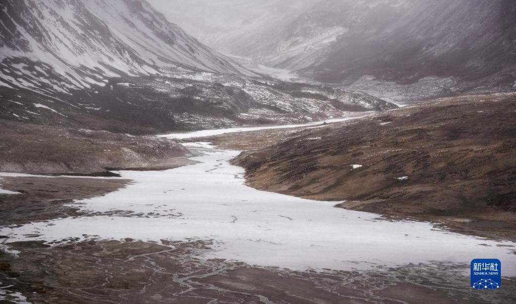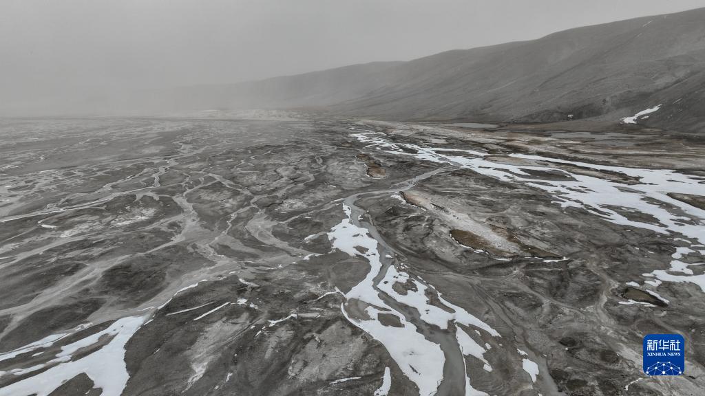 杰瑪央宗冰川融化后形成的河床(5月31日攝,無人機照片)。新華社記者 晉美多吉 攝