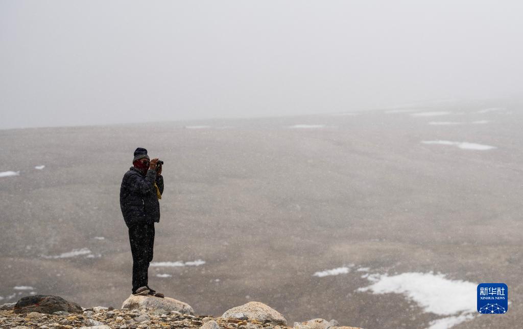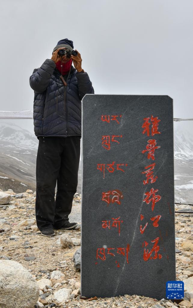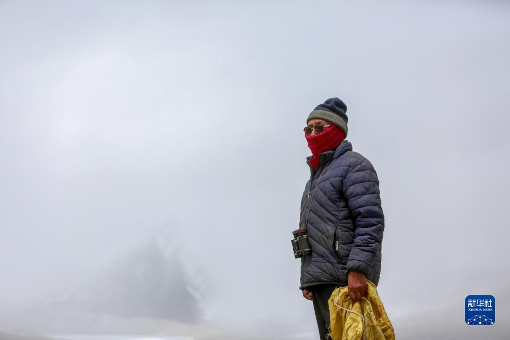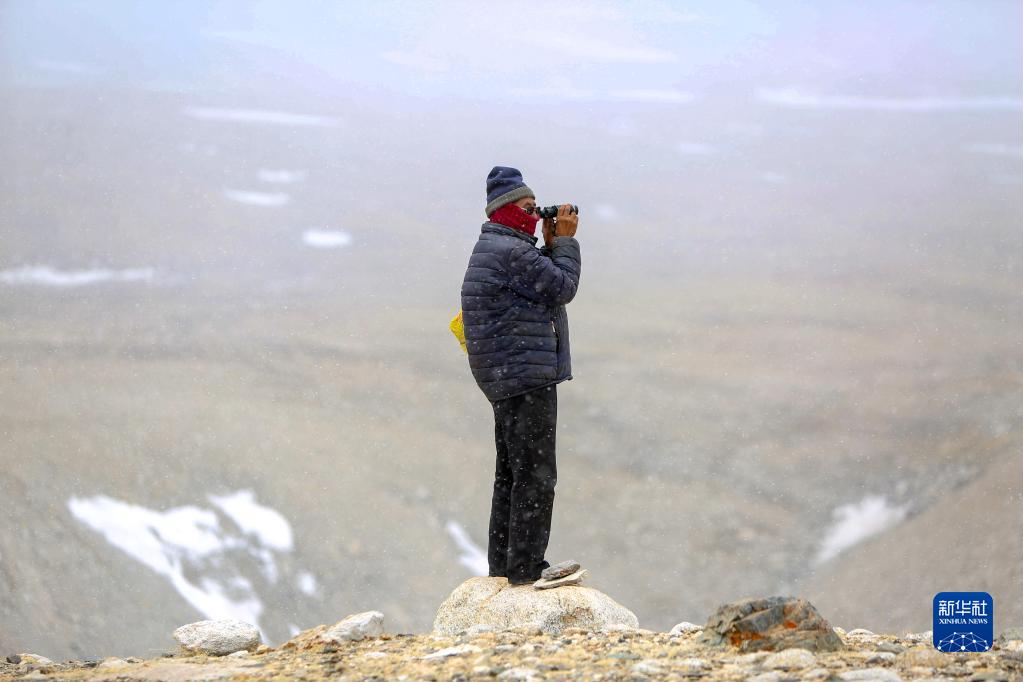 乃乃在用望遠鏡查看冰川是否有異樣(5月31日攝)。新華社記者 晉美多吉 攝