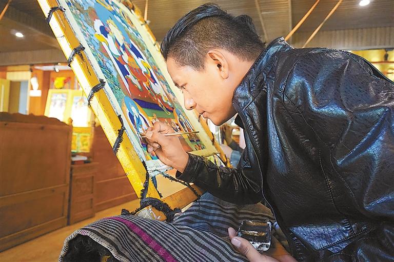 多年來,西藏在保護發(fā)揚唐卡藝術(shù)的同時,推動唐卡產(chǎn)業(yè)不斷做大做強,讓其從文化“遺產(chǎn)”變?yōu)樵鍪铡柏敭a(chǎn)”。
