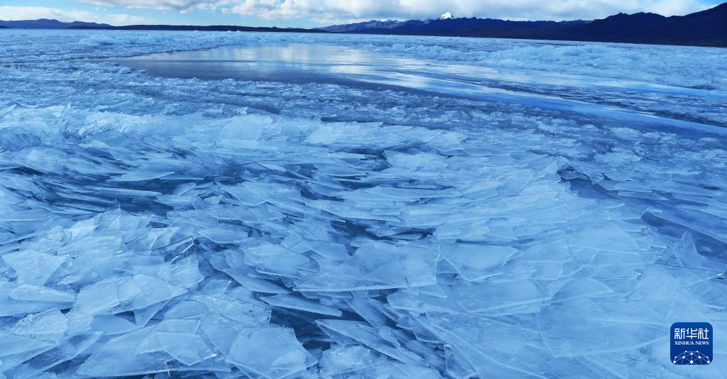 瑪旁雍錯(cuò)湖面上的冰像碎玻璃一樣透亮(1月29日攝)。新華社記者 關(guān)明輝 攝 ??