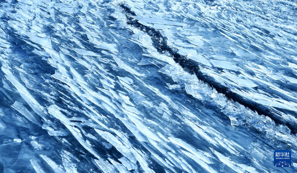 瑪旁雍錯(cuò)湖面上的冰堆積在一起,呈現(xiàn)出各式各樣的造型(1月29日攝,無(wú)人機(jī)照片)。新華社發(fā)(旦增努布攝) ??