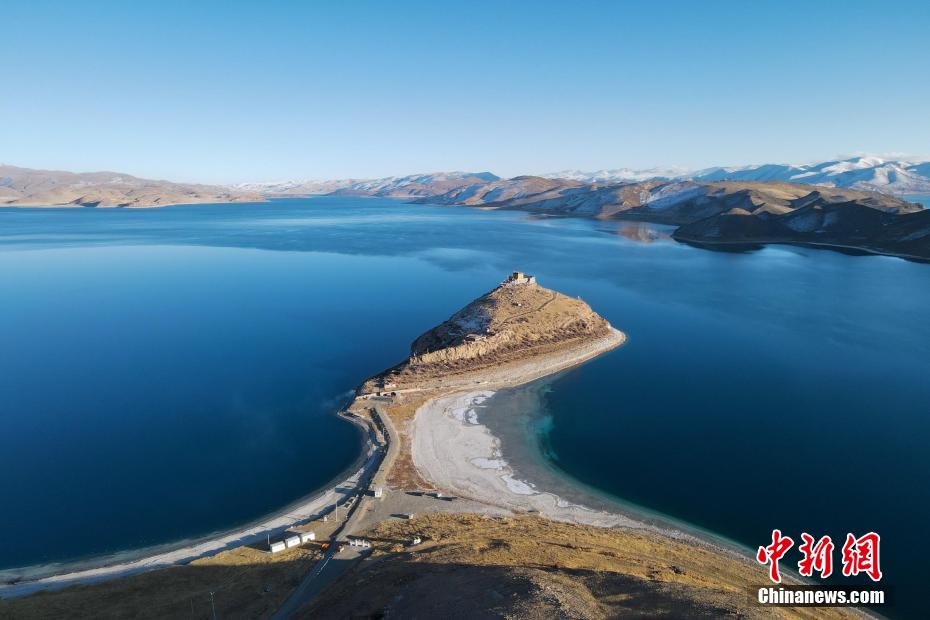 西藏自治區(qū)山南市羊卓雍錯(cuò)(簡(jiǎn)稱羊湖)藏語(yǔ)意為“碧玉湖”,湖面海拔4441米,與納木錯(cuò)、瑪旁雍錯(cuò)并稱西藏三大“圣湖”。近日,中新網(wǎng)記者自駕羊卓雍錯(cuò)看到,周邊部分山體被積雪覆蓋,湖水更顯深藍(lán),航拍視角下像巨大的藍(lán)寶石鑲嵌在高原大地,風(fēng)光壯麗。在羊卓雍錯(cuò)湖畔,記者還偶遇藏原羚、赤狐等野生動(dòng)物,盡顯高原生態(tài)之美。圖為西藏羊卓雍錯(cuò)日托寺風(fēng)光。江飛波 攝
