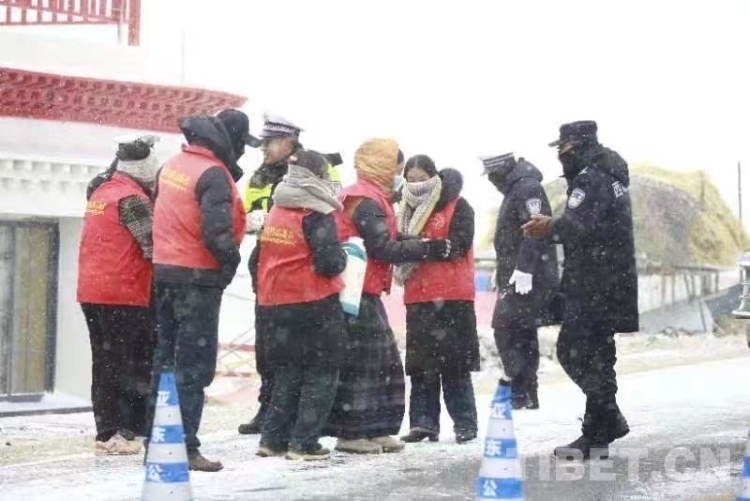 中國西藏網(wǎng)訊 近日,西藏氣象局連續(xù)發(fā)布大風(fēng)和暴雪黃色預(yù)警。22日,受西風(fēng)槽影響日喀則市亞東縣帕里鎮(zhèn)范圍降暴雪,G562部分道路積雪厚度達(dá)20余厘米。降雪降溫對(duì)交通影響較大,為守護(hù)轄區(qū)內(nèi)道路安全,帕里鎮(zhèn)四社區(qū)駐村工作隊(duì)組織12名45歲以下黨員身著紅色志愿服,利用社區(qū)愛心驛站配合執(zhí)勤交警,以輪班形式對(duì)轄區(qū)內(nèi)國道沿線進(jìn)行不間斷巡邏,重點(diǎn)對(duì)急彎陡坡、橋面、風(fēng)吹雪等路段進(jìn)行不間斷巡查,警民協(xié)作確保道路安全暢通。