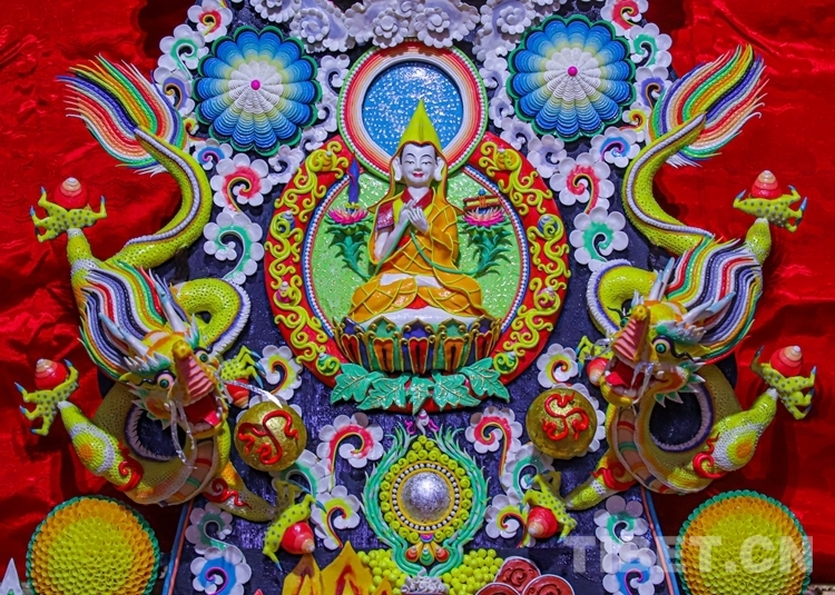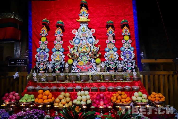 據(jù)了解,每年藏歷正月十五日是藏傳佛教宗教節(jié)日“覺(jué)阿卻巴”,即“正月十五供奉節(jié)”。每年這天大昭寺都會(huì)展出精美絕倫的酥油花雕塑,但是雕塑的內(nèi)容每年都有所不同,其內(nèi)容會(huì)有佛祖釋迦牟尼、師徒三尊、吉祥八寶、和睦四瑞等酥油雕塑。