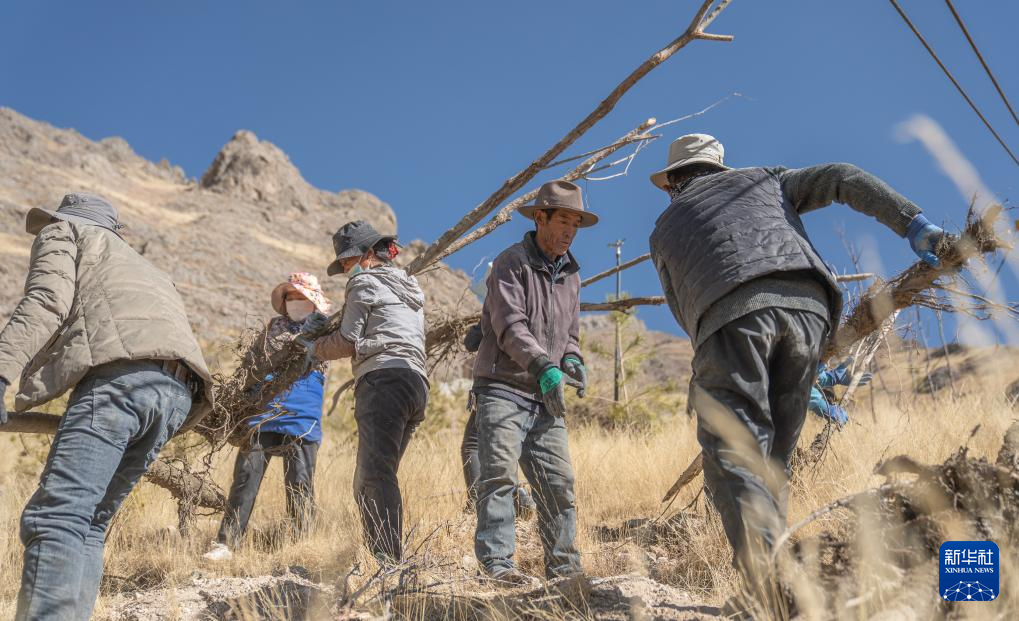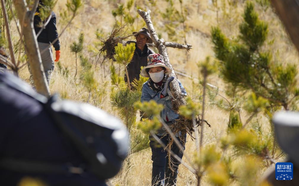 3月12日,東嘎社區(qū)二組村民在搬運(yùn)樹苗。新華社記者 晉美多吉攝 ??