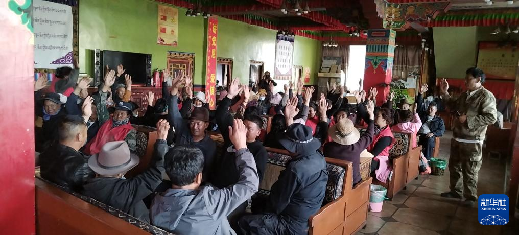 2013年1月,東嘎社區(qū)二組村民在組長仁增的倡議下,舉手通過表決,決議開展植樹造林活動(受訪者供圖)。新華社發(fā)