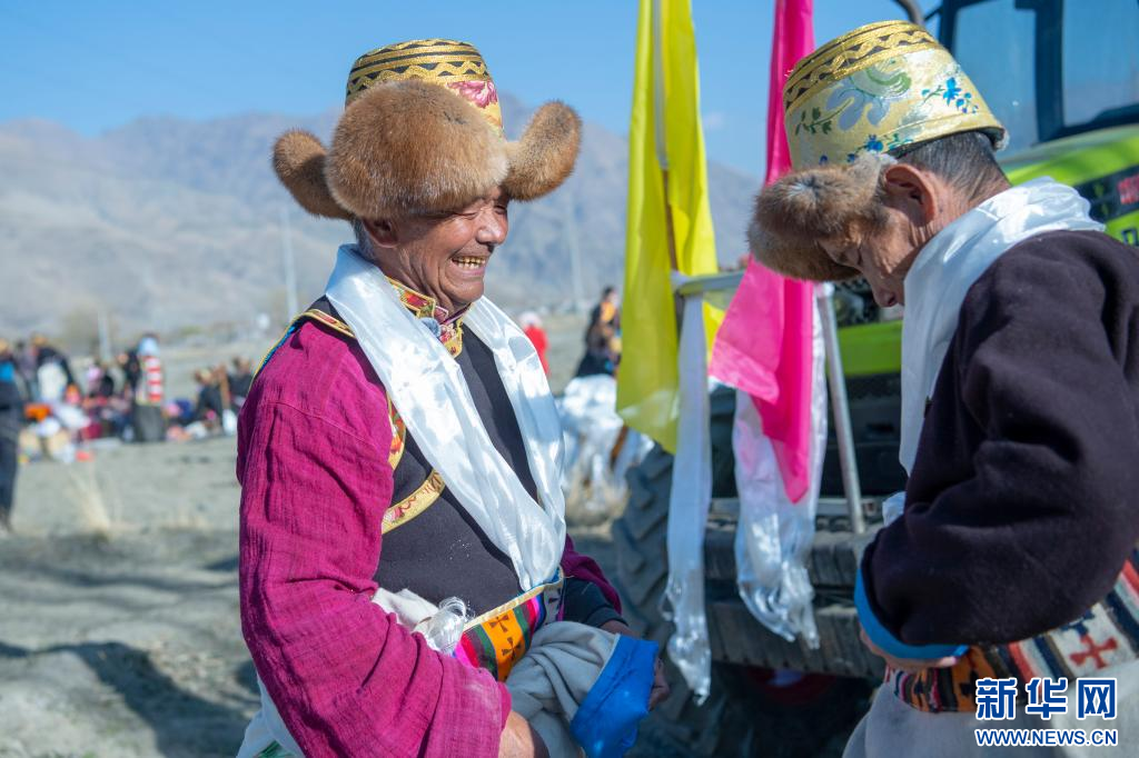 3月16日,克松社區(qū)居民格桑多吉(左)在參加春耕儀式。新華網(wǎng) 旦增努布 攝 ??