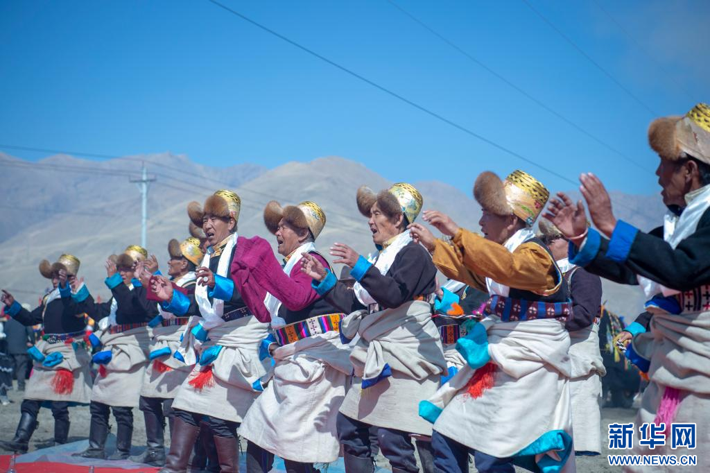 3月16日,克松社區(qū)居民格桑多吉在領(lǐng)唱古老的《春耕之歌》。新華網(wǎng) 旦增努布 攝 ??