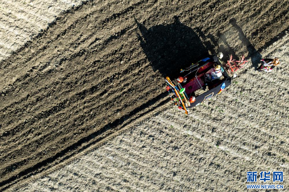 3月16日,克松社區(qū)居民在進行春耕儀式(無人機照片)。新華網(wǎng) 旦增努布 攝 ??