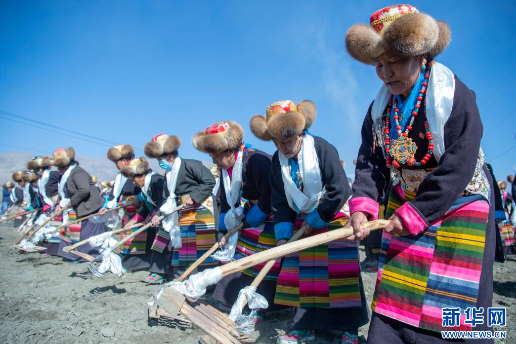 3月16日,克松社區(qū)居民在參加春耕儀式。新華網(wǎng) 旦增努布 攝