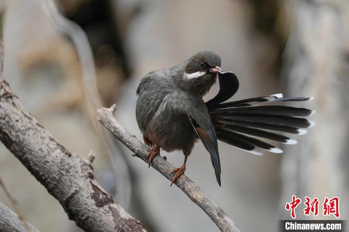 圖為林周縣境內(nèi)的灰腹噪鹛。貢嘎來松 攝