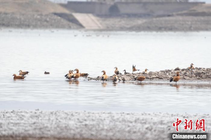 圖為斑頭雁、赤麻鴨在林周縣虎頭山水庫嬉戲。貢嘎來松 攝