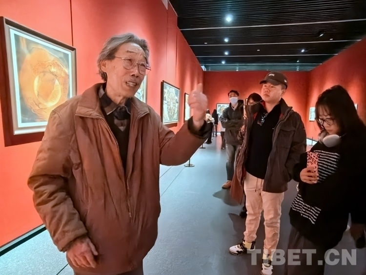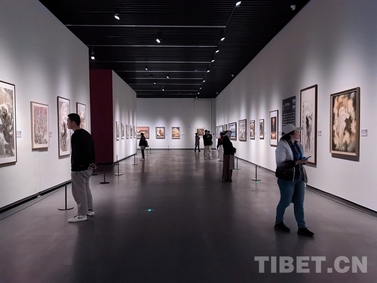 走進(jìn)西藏美術(shù)館,館內(nèi)A區(qū)1號展廳正在展出“雪域名家”系列的第一個展覽“雪域?qū)簟び嘤研拿佬g(shù)作品展”。