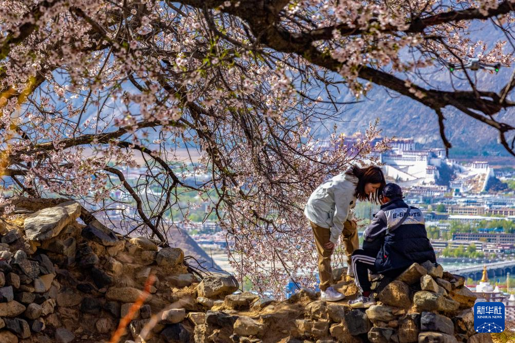 近日,西藏拉薩市城關區(qū)慈覺林社區(qū)的一片古桃樹進入盛花期,因其正對著布達拉宮,成為游人拍照打卡的“網(wǎng)紅”地。