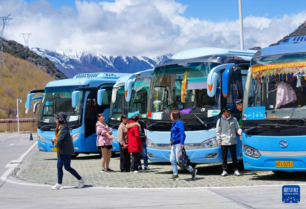 游客在拉(薩)林(芝)高等級公路工布江達縣服務(wù)區(qū)下車小憩(4月19日攝)。新華社記者 張汝鋒 攝