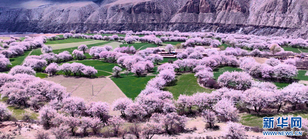 這是洛隆縣俄西鄉(xiāng)綻放的杏花(4月14日攝)。新華社發(fā)
