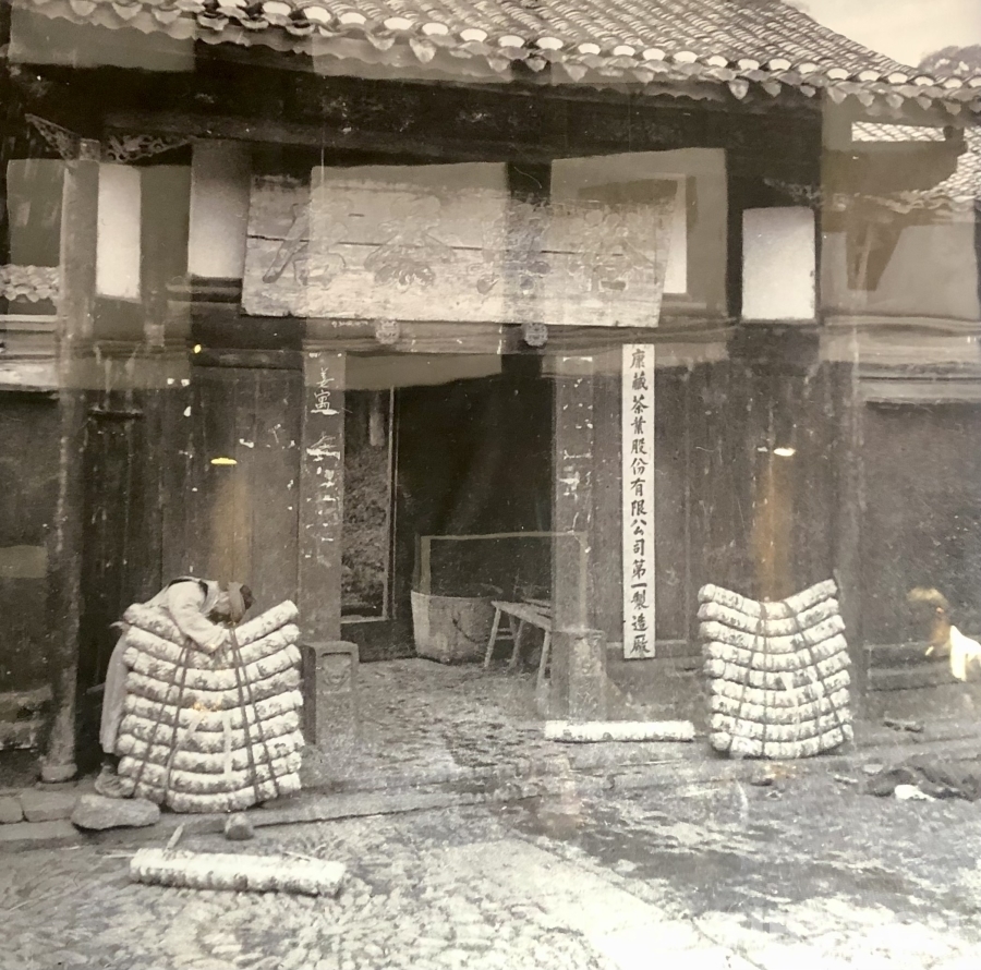 1939年,中國電影教育的開創(chuàng)者之一、時任金陵大學(xué)教師的孫明經(jīng)對西康進行了系統(tǒng)的考察,也為姜家大院留下了珍貴的影像資料。他拍攝到當時姜家大院大門口的情景:“裕興茶店”的匾額下,掛著“康藏茶葉股份有限公司第一制造廠”的木牌,大門兩邊各放著一背茶包,均為九條,左邊有一位女背夫,正在打捆茶包,整個茶包預(yù)估有200斤,而在當時,男背夫所要背負的重量要達到300斤左右。
