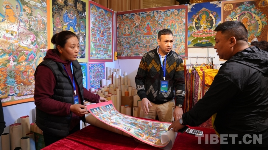 尼泊爾的唐卡、佛像、毛毯等深受當(dāng)?shù)叵M者的喜愛。來自尼泊爾的次旺卓嘎是第四次來拉薩,她說:“西藏消費者特別喜歡毛毯,我們卡莫地毯工業(yè)的毛毯選的都是質(zhì)量最好的,均為純手工、純羊毛制作,在花樣上也采用了與以往不同的元素和圖案,深得大家喜愛,能夠參加展銷會我很開心?!?/p>