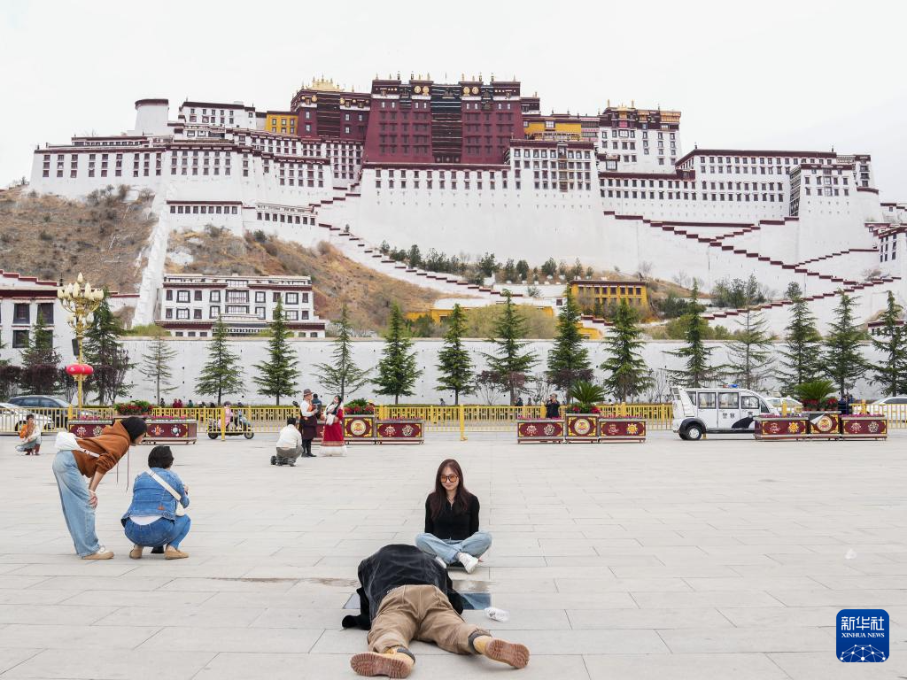 5月5日,游客在布達(dá)拉宮周邊拍照留念。新華社記者 丁汀 攝