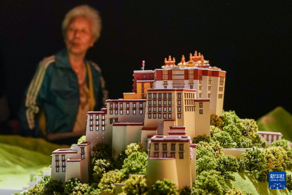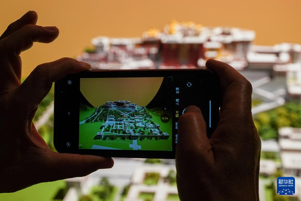 5月11日,觀眾在展出現場參觀拍攝布達拉宮模型。新華社記者 李博 攝