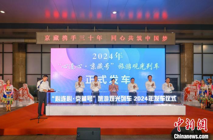 由文化和旅游部、國鐵集團指導(dǎo),北京援藏指揮部、拉薩市城關(guān)區(qū)人民政府等單位組織的2024年“心連心·京藏號”旅游專列在北京西站首發(fā)。