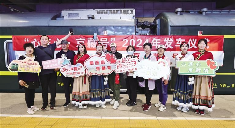 為支持西藏立足特色資源發(fā)展旅游產(chǎn)業(yè),在北京對(duì)口支援拉薩30周年之際,5月19日,由文化和旅游部、中國(guó)國(guó)家鐵路集團(tuán)指導(dǎo),中共拉薩市委員會(huì)、拉薩市人民政府、北京援藏指揮部、中國(guó)鐵路北京局集團(tuán)有限公司主辦,中共拉薩市城關(guān)區(qū)委員會(huì)、拉薩市城關(guān)區(qū)人民政府、中國(guó)鐵道旅行社集團(tuán)有限公司承辦的“心連心·京藏號(hào)”旅游列車(chē)在北京發(fā)車(chē)。