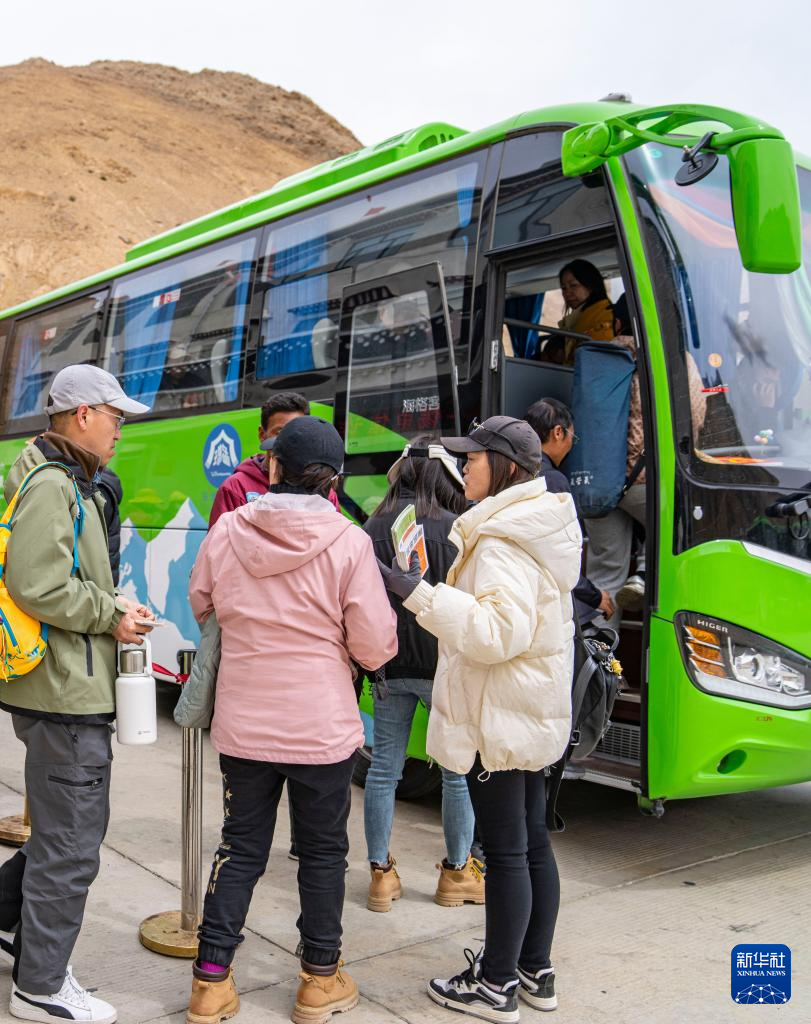 游客在珠穆朗瑪國家公園內(nèi)排隊換乘環(huán)保大巴車(5月20日攝)。新華社記者 孫非 攝